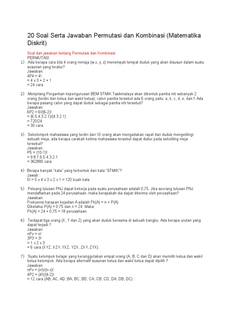40+ Contoh Soal Permutasi Dan Jawabannya PNG. Lihat juga soal dan jawaban permutasi part ii. Contoh soal turunan fungsi aljabar dan pembahasannya.